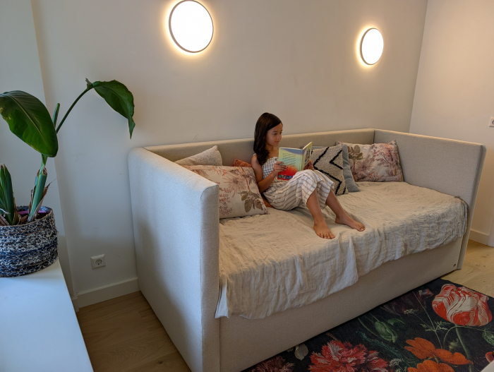 Dankzij het strakke Scandinavische design staat het bed prachtig in haar kamer. Het oogt rustig en tijdloos, maar wel met genoeg karakter. Het is dus zeker geen saai logeerbed dat ergens in een hoekje weggemoffeld hoeft te worden. Sterker nog: het maakt de kamer echt af.